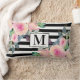 Black White Stripe Pink Waterverf Floral Monogram Kussen