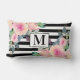 Mooie roze waterverf floreert op zwarte en witte rugby gestreept, aangepaste decoratorkussen. Aangepast met je monogram/initiaal.