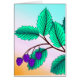 Ripe zwarte bessen op een tak van smaragdgroene bladeren tegen een zachte, oranje achtergrond van turquoise, zonnehemel