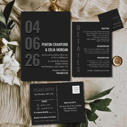 Make a bold statement with our “Blackout Minimalist Details” enclosure card — where simplicity meets sophistication. Featuring a deep black-grey background & heading in a striking typography, this minimalist design captures timeless elegance with a modern edge. Perfect for couples who love clean lines, bold contrast, and contemporary style. Fully editable & easy to personalize for your dream wedding.