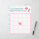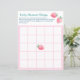 Blad van baby shower spelpapier met schattige aardbeien in een kopje in waterverf schetsstijl.