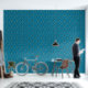 Bladeren op blauwe achtergrond Wallpaper Behang