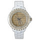 Prachtig strass wit emaille horloge met Bladmuziek Vioolontwerp - geweldig voor muziekliefhebbers!