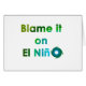 Heb je problemen? Heb je een zondebok nodig? De schuld van El Nino. Als Moeder Natuur aanvallen met tornado's, orkanen, droogte en winterse stormen, kijken meteorologen naar de Stille oceaan en geven El Nino de schuld. Waarom kan je dat niet? Geweldig tongvol eco-ontwerp voor Earth Day, klimaatverandering, vriendin/vriendjesproblemen, en voor die speciale wetherman in je leven.