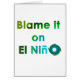 Heb je problemen? Heb je een zondebok nodig? De schuld van El Nino. Als Moeder Natuur aanvallen met tornado's, orkanen, droogte en winterse stormen, kijken meteorologen naar de Stille oceaan en geven El Nino de schuld. Waarom kan je dat niet? Geweldig tongvol eco-ontwerp voor Earth Day, klimaatverandering, vriendin/vriendjesproblemen, en voor die speciale wetherman in je leven.