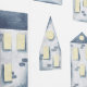 Blauw abstract lijn Huis patroon Wallpaper. Verfris uw ruimte met deze Blauwe abstracte lijn House patroonbehang. Perfect voor een keuken backsplash, badkamer en meer.