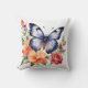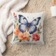 Blauw Aquarel Vlinder Perzik Rood Helder Bloemmoti Kussen