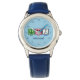 Een vredesteken, hart, en een autisme lint voor autisme bewustzijn voor mensen in het spectrum. Een schattig kinderhorloge in het blauw gepersonaliseerd met de naam van een kind.