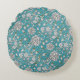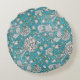 Blauw Bloemen Zilver Bladbloemen Rond Kussen