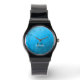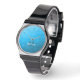 Blauw cyaan geometrisch maaspatroon Monogram horloge. Personaliseer met uw aangepaste initiaal en naam. Blauw cyaan gradiënt geometrisch maaspatroon.