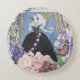 Blauw Elegante Vrouw Bloemen Fancy jurk Rond Kussen