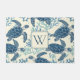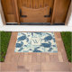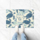 Deze prachtige monogrammed deurmat heeft een op de kust geïnspireerd patroon van zeeen schildpadden en koraal in de kleuren blauw en crème. Personaliseer het monogram met uw keuze van initiaal.