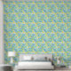 Blauw en geel Handbeschilderde Waterverf Flowers Behang