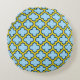 Blauw en geel trellis, rooster, quatrefoil rond kussen