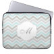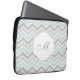 Blauw en grijs Zigzag Chevron Monogram Laptop Sleeve