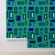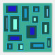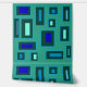 Lichtblauw en mintgroen rechthoeken en vierkanten op groene achtergrond. Eenvoudig en kleurrijk patroon