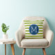 Blauw en Limoen Striped Groen Monogram Patroon Kussen