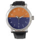 U zult genieten van dit klassieke, stijlvolle horloge met een oranje en donkerblauwe gezicht.
