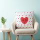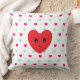 Schattige lichtblauw en magenta rood hartpatroon op wit Sierkussen. Een groot rood gelukkig hart ligt aan de voorzijde. Het rode hart afbeelding kan worden aangepast.