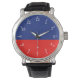 Deze wijzerplaat is verdeeld tussen donkerblauw en rood.
