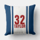Eenvoudig en klassiek Blue & White Gestreept Monogramed en Genummerd Sports Jersey Sierkussen. Geweldig voor Racers, Basketballers, Honkballers, Hockey Spelers, Football Spelers of een andere atleet. Pas aan met uw nummer en naam of de naam en het nummer van uw favoriete sportspeler.