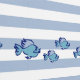 Blauw en wit gestreepte print met kleurrijke visse behang