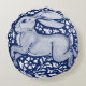 Blauw en wit konijn Pillow Indigo Cobalt Dedham Rond Kussen