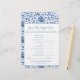 Baby shower spel "Guess The Right Price?" in een elegant waterverf blauw-wit motief, geïnspireerd op het type dat je kunt zien op gemberpotjes. Alle tekst is volledig aanpasbaar aan uw behoeften.