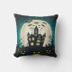 Dit donkerelegante Halloween kussen heeft een diepblauwe achtergrond met volle maan, een spookhuis, verlichte Jack-O-Lantern, vliegende vleermuizen en spookachtig kerkhof. Geweldig als een Halloween cadeau aan een vriend of geliefde deze vakantie! Bezoek mijn winkel voor meer Halloween oorbellen, uitnodigingen, stempels, kaarten, stickers en meer. goo.gl/qsrBZ9