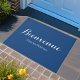 Elegant blauw en wit Frans welkomstmat. U kunt het gemakkelijk aanpassen met uw familienaam. Merk op dat je in het Frans "Chez les Robinson" zegt en niet "Chez les Robinsons", wat betekent "Bij de Robinson thuis". Het is correct in het Frans om aan het eind geen "s" toe te voegen. U kunt ook gewoon schrijven "Chez Robinson" of "Famille Robinson" als u wilt. De blauwe achtergrondkleur is aanpasbaar.