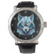 Blauw Geometrisch Wolfhoofd Horloge