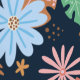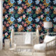 Blauw Groen Groot Vet Bloem Patroon Behang