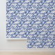 Blauw en wit, bloemenblad, naadloos, herhalend patroon voor doe-het-zelfbehangprojecten.