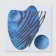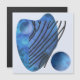 Modern ontwerp met unieke vormen en lijnpatronen in rijke tinten blauw.