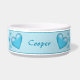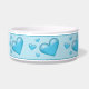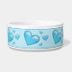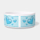 Destei's illustratie van mooie blauwe kleurenharten in verschillende maten. De achtergrondkleur is lichtblauw en de boven- en onderkant hebben een dunne blauwe rand. Er is ook een personalizable tekstgebied voor een naam of andere douanetekst.