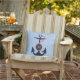 Koel donkerblauw en koraalrood nautisch bootanker met aanpasbaar monogram en blauwe en witte strepen achtergrond