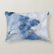 Een accentkussen in donkerblauwe, witte en lichtblauwe marmeren vloeibare inktkleuren. Het ontwerp is een dromerig romantisch en elegant ontwerp met gouden en zilveren sporen zoals de kustbries van zee. Het ziet eruit als een abstracte marmor stenen textuur en vloeibare lava op hetzelfde moment. Dit ontwerp past perfect in huizen aan de kust en zorgt ervoor dat de bries in uw kamer komt.