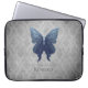 Blauw met juwelen versierde vlinderdamast laptop sleeve