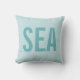 Blauw / turquoise zeegaand moderne minimalistische eenvoudige kussen met de tekst: "zee".