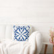 Blauw motief op witte achtergrond kussen