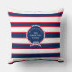 Blauw Navy Wit Rood Nautisch Monogram Streep Outdo Kussen