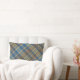 Een digitaal patroon van lijnen in schaduwen van oranje, en licht en donkerblauw, in diagonaal gestreepte cheques of tartan.