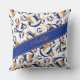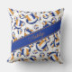 Deze schattige volleybalteamkleuren werpen kussen voor meisjes met een gevarieerd formaat gestileerde blauwe, oranje en witte volleyballen die op alle mogelijke manieren een volleybalnetafbeelding overheersen - de blauwe en oranje panelen van volleybalkogels worden gemengd met een artsy, licht bloemig patroon - personaliseer haar naam in een verfijnd handgeschreven lettertype op een gewaagd, hoekige, volledige kleurenstrip - witte achtergrond en blauw kleurstrip is aanpasbaar - door katz_d_zynes