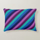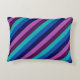 Een accentkussen met een kleurrijk patroonontwerp van diagonale strepen in koel blauwgroen, oceaanblauw, marineblauw, pruim paarse en lavendel.