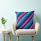 Een 20 "x 20" gooi kussen met een kleurrijk patroonontwerp van diagonale strepen in koel blauwgroen, oceaanblauw, marineblauw, pruim paarse en lavendel.
