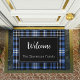 Blauw Plaid Welkom Monogrammed Familienaam Deurmat