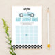 Dit is een Blauw Race Auto Bingo Baby Shower Spel.