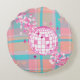 Blauw, Roze & Perzikpatroon met Glitter & Harten | Rond Kussen