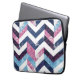 Blauw Roze Wit Marmeren Chevron Laptop Sleeve