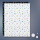 Mooie plakboekpapier voor papieren ambachten met een patroon van blauwe sterren en gele stippen. Aan de ene kant is de achtergrond wit en aan de andere kant zwart. Illustratief en ontworpen door Patricia Alvarez.